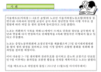 | 목차1. 노동쟁의란 무엇인가 2. 쟁의행위의 쟁점은 무엇인가 3. 근로자 측의 쟁의 행위는 무엇이 있는가 4. 노동쟁의를 조정하라 5. 필수공익 사업장별 필수유지업무는 무엇인가 본문 1. 노동쟁의란 무엇인가 * 노동쟁의 조정 현행 노동조합 및 노동관계조정법 제 45조 제 2항은 쟁의행위는 조정절차를 거치지?아니하면 이를 행할 수 없다고 하여 쟁의행위에 대한 조정전치주의를 채택. 이에 따라 일반사업장의 경우 10일,공익사업장의 경우 15일의 조정기간이 경과하지 않으면 원칙적으로 쟁의행위를 할 수 없고 위반시에는 1년 이하의 징역 또는 1000만원 이하의 벌금이 부과 그러나 판례는 조정전치주의 위반의 쟁의행위에 대하여 조정전치에 관한 규정의 취지는 분쟁을 사전 조정하여 쟁의행위 발생을 회피하는 기회를 주려는 데에 있는 것이지, 쟁의행위 자체를 금지하려는 데에 있는 것이 쟁의행위의 조정전치주의 아니므로 쟁의행위가 조정전치의 규정에 따른 절차를 거치지 아니하였다고 하여 무조건 정당성이 결여된?쟁의행위라고 볼 것이 아니라며 구체적 사정을 들고 있다. 하고 싶은 말본 자료는 노동쟁의 쟁점과 조정기법에 대해 서술한 자료로 노동쟁의 개념, 쟁의행위의 쟁점, 세계 노사분규의 쟁점, 근로자 측의 쟁의행위(파업, 태업, 불매운동, 피켓팅, 생산관리, 준법투쟁), 노동쟁의 조정(조정, 중재, 긴급조정, 특별조정위원회), 필수공익 사업장별 필수유지업무, 한국의 노동쟁의 현황 등에 대해 상세하게 설명한 자료임 |
