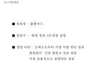 | 목차1. 홈플러스 기업소개 (1) 기업개요 (2) 기업연혁 (3) 성공요인 2. 기업환경분석 (1) 시장환경분석 (2) 5 Forces Model분석 3. SWOT분석과 전략 (1) Strength (2) Weakness (3) Opportunity (4) Threat (5) SO전략 (6) ST전략 (7) WO전략 (8) WT전략 4. 홈플러스 STP분석 (1) Segmentation (2) Targeting (3) Positioning 5. 마케팅믹스 4P전략 (1) Product (2) Price (3) Place (4) Promotion 6. 홈플러스 문제점과 해결방안 (1) 문제점 (2) 해결방안제안본문1. 소비의 양극화로 합리적 소비 문화가 인식되면서 백화점이나 할인점의 이용률이 높아지고 있다 2. 손해를 보더라도 신속한 교환 조치를 통한 이미지 개선 3. 업계 최초로 1일 10회 배송 서비스와 당일 배송 서비스 등으로 대형마트 부문 1위로 성장해온 홈플러스 인터넷쇼핑몰을 국내 최고의 온라인 종합쇼핑몰로 키우겠다 4. 홈플러스는 세계적으로 이슈화되고 있는 지구 기후변화 대응을 선도하기 위해 2000년 환경경영기업을 선포하고 전사적인 친환경 경영을 추진하고 있다. 아울러 4랑운동 (환경사랑,지역사랑,이웃사랑,가족사랑)을 중심으로 사회공헌활동에도 적극 나서고 있다. 하고 싶은 말 홈플러스 마케팅전략 PPT 홈플러스 기업현황과 SWOT분석,마케팅 4P,STP분석및 홈플러스 문제점과 해결방안제언 파워포인트 발표자료입니다. 충분한 정보들이 많이 있으니 홈플러스에 관하여 어떤 주제로든 발표를 함에 있어서 귀중한 자료가 될것입니다. 바로 대본짜서 발표하실 수 있게 스토리 라인이 만들어져 있으니 허술한 PPT 받아서 수정하고 시간,돈 쏟지마시고 제대로 된 PPT 받아서 시간아끼시고 점수 잘 받으시길 바랍니다. |